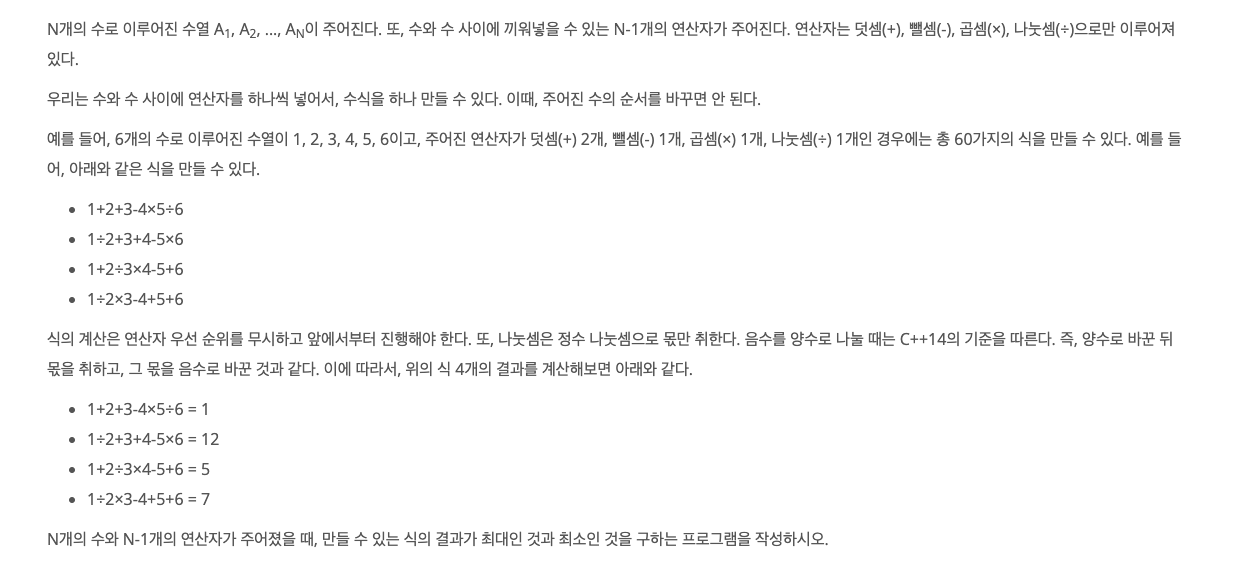 연산자를 사용할경우 연산자 수를 -= 1 해서 사용을 했다는 표시를 남겼고, 백트래킹에서 나왔을때는 다시 += 1 을 해주는식으로 해서 여러 경우의 수를 계산하였다.